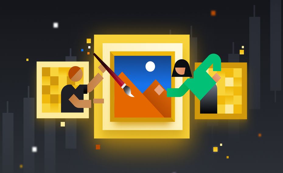 يُمكن تحويل الأعمال الفنية الرقمية — من بينها الصور، والقطع التفاعلية، وأعمال الذكاء الاصطناعي — إلى رموز NFT. مما يُتيح للفنانين إنشاء أعمالهم الإبداعية وبيعها وكذلك تتبعها.