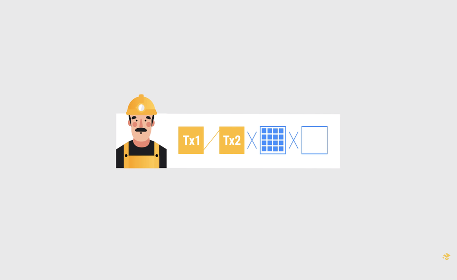 في هذه المعاملة، تعطي أليس المعدنين عنوان بوب ومبلغ البيتكوين الذي ترغب في إرساله، بالإضافة إلى التوقيع الرقمي والمفتاح العام الخاص بها. يتم التوقيع باستخدام المفتاح الخاص لأليس حيث يستطيع المعدنون التحقق، في الواقع، من ملكية أليس لهذه العملات.