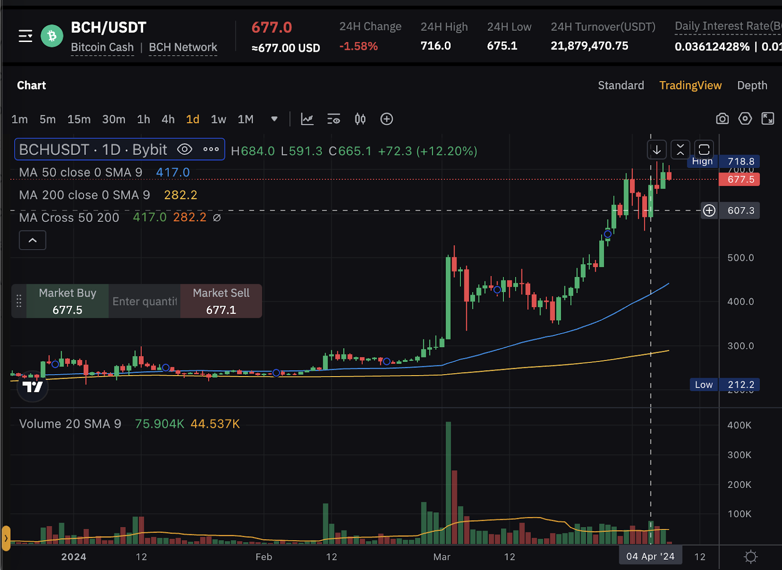 قفزت عملة Bitcoin Cash بنسبة 10٪ تقريبًا في 4 أبريل 2024، مباشرة بعد التنصيف. ومع ذلك، لم يكن الارتفاع مستدامًا، وقد عاد سعر (BCH) منذ ذلك الحين إلى مستوى ما قبل النصف.